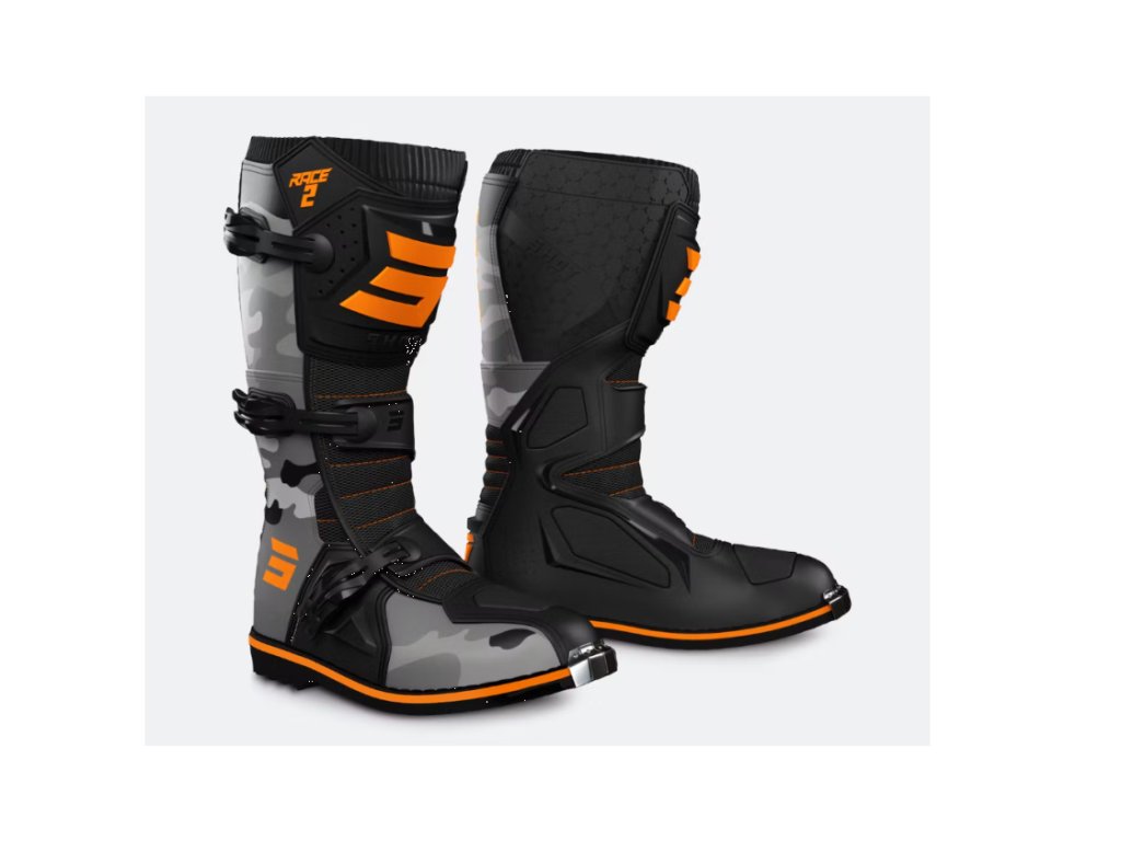 Boty na motorku Shot Race 2 černo-camo-fluo oranžové