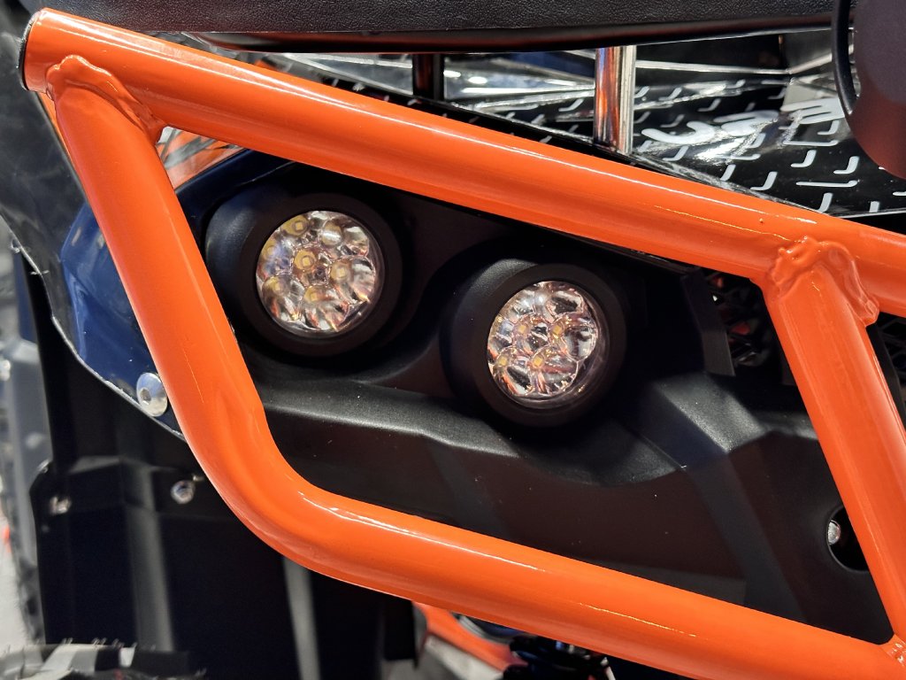 Naše čtyřkolky mají hydraulické brzdy a páčky, které děti lehce zmáčknou a snadno zastaví. Taky lze postupně zvyšovat výkon nastavením rozsahu plynové páčky. Čtyřkolka má výtrhovou pojistku, pokud dítě spadne, stroj se vypne. Vybavili jsme ji LED diodovými světly, které skvěle posvítí na cestu a nejsou "jen na oko" a nesmí chybět digitální displej s ukazatelem rychlosti. Určitě doporučujeme přikoupit i dětskou helmu a vhodné oblečení.