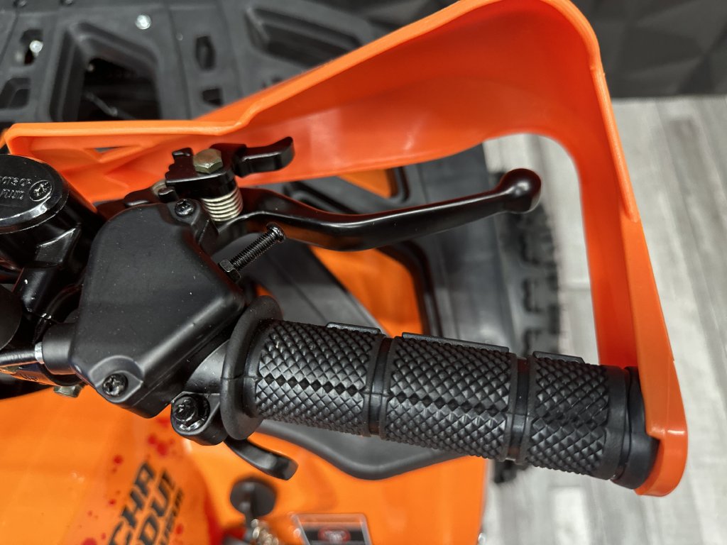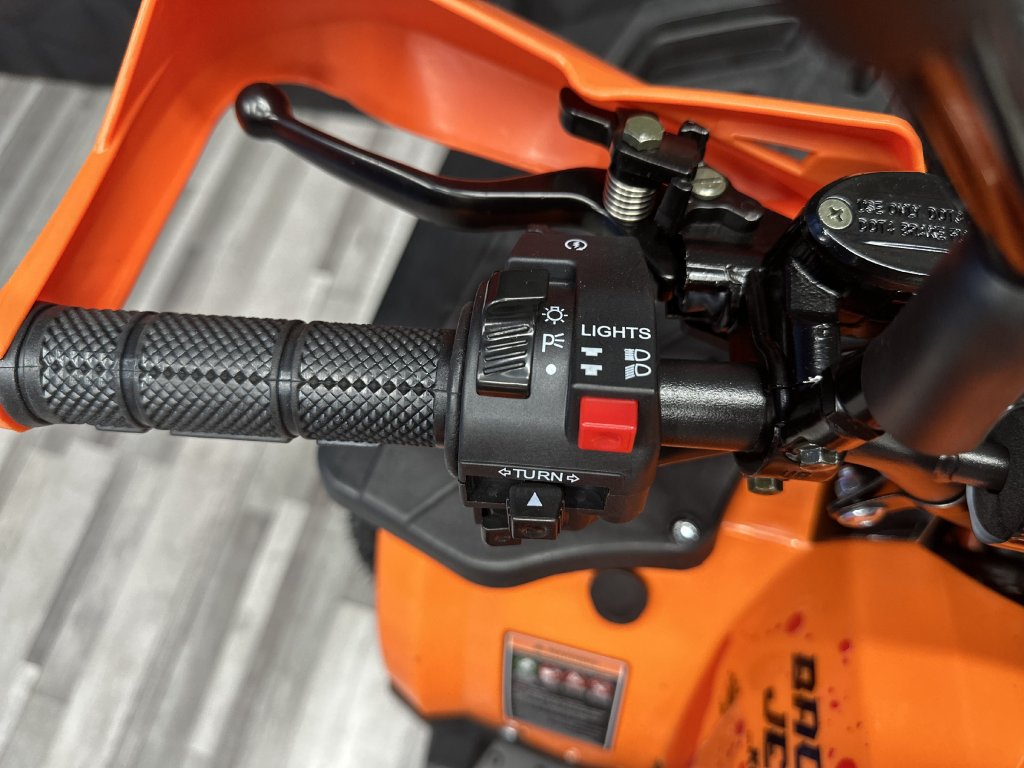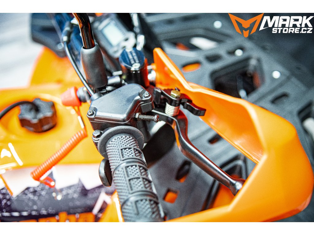 Naše čtyřkolky mají hydraulické brzdy a páčky, které děti lehce zmáčknou a snadno zastaví. Taky můžeš postupně zvyšovat výkon nastavením rozsahu plynové páčky. Čtyřkolka má výtrhovou pojistku, pokud dítě spadne, stroj se vypne. Vybavili jsme ji LED diodovými světly, které skvěle posvítí na cestu a nejsou jen na oko. Zpětná zrcátka pro sledování ostatních jezdců v okolí. Digitální displej s ukazatelem rychlosti. Určitě doporučujeme přikoupit i dětskou helmu i vhodné oblečení.