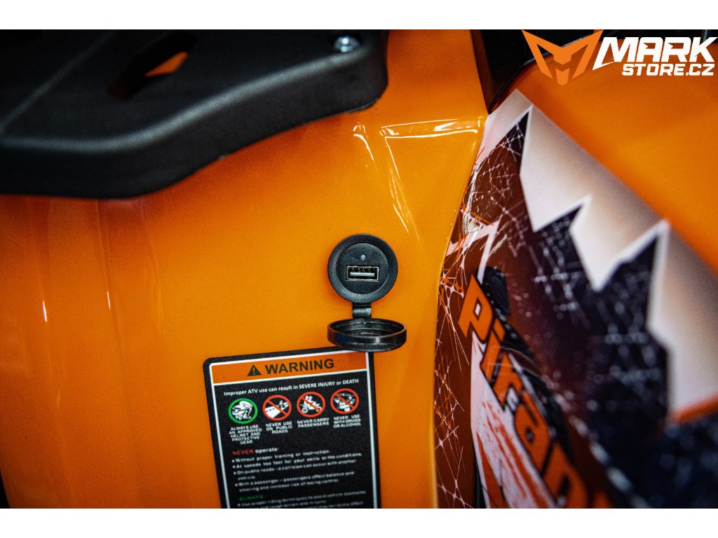 Na bezpečnost vašich dětí dbáme především a proto jsme u tohoto modelu neponechali nic náhodě a vybavili ho možným dorazem plynu, aby jste si mohli zregulovat maximální rychlost, dále je součástí výbavy dálkový ovladač na možné vypnutí motoru na dálku. Čtyřkolka Piranha MARKSTORE je také vybavena hydraulickými brzdami pro snadnější brždění a v poslední řadě je velmi dobře zakrytovaný prostor na nohy, aby mělo vaše dítě nohy v bezpečí a nehrozilo ušpinění od bláta z kol. A nakonec jsme čtyřkolce dodali opěrku spolujezdce, aby nešlo přepadnout při akceleraci. Věříme, že oceníte naši snahu o bezpečnost a čtyřkolka udělá vaše děti šťastnými, o to nám v Markstore jde především. Samozřejmě i tak doporučujeme dbát na řádné ochranné prostředky, helmu, chránič páteře, brýle apod. Vše to samozřejmě najdete na našem eshopu.