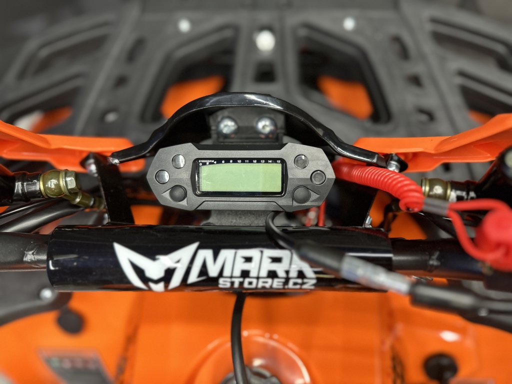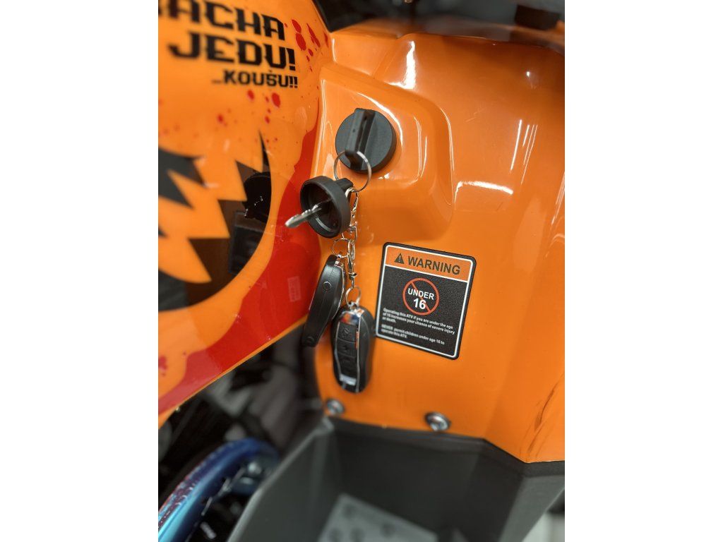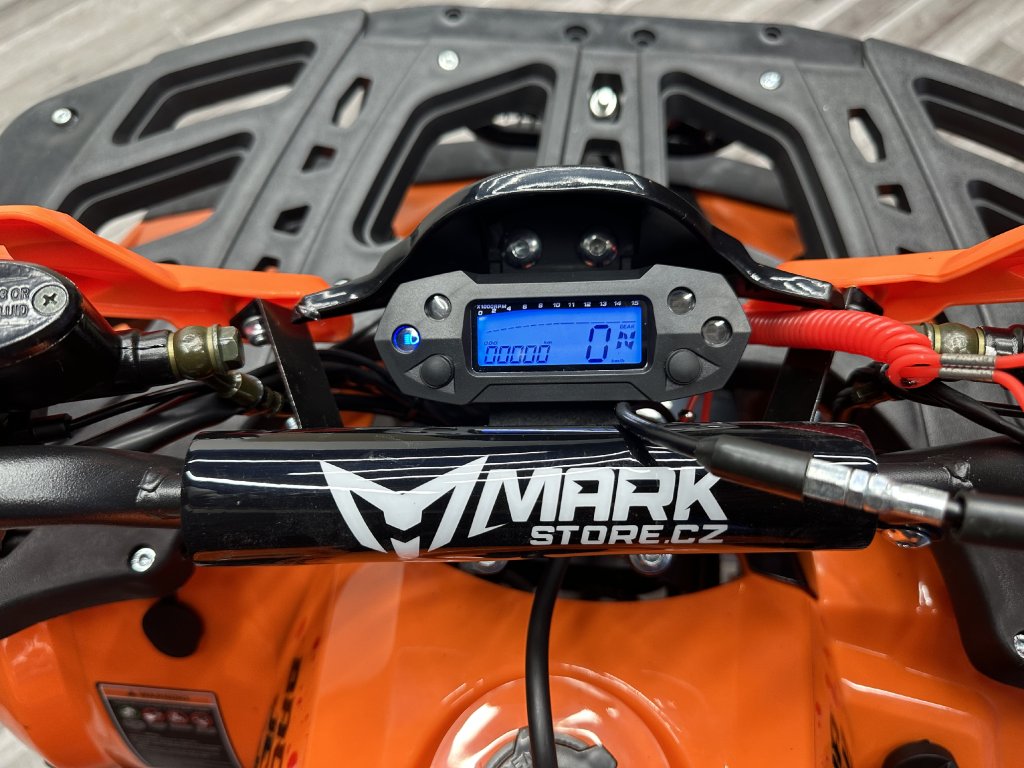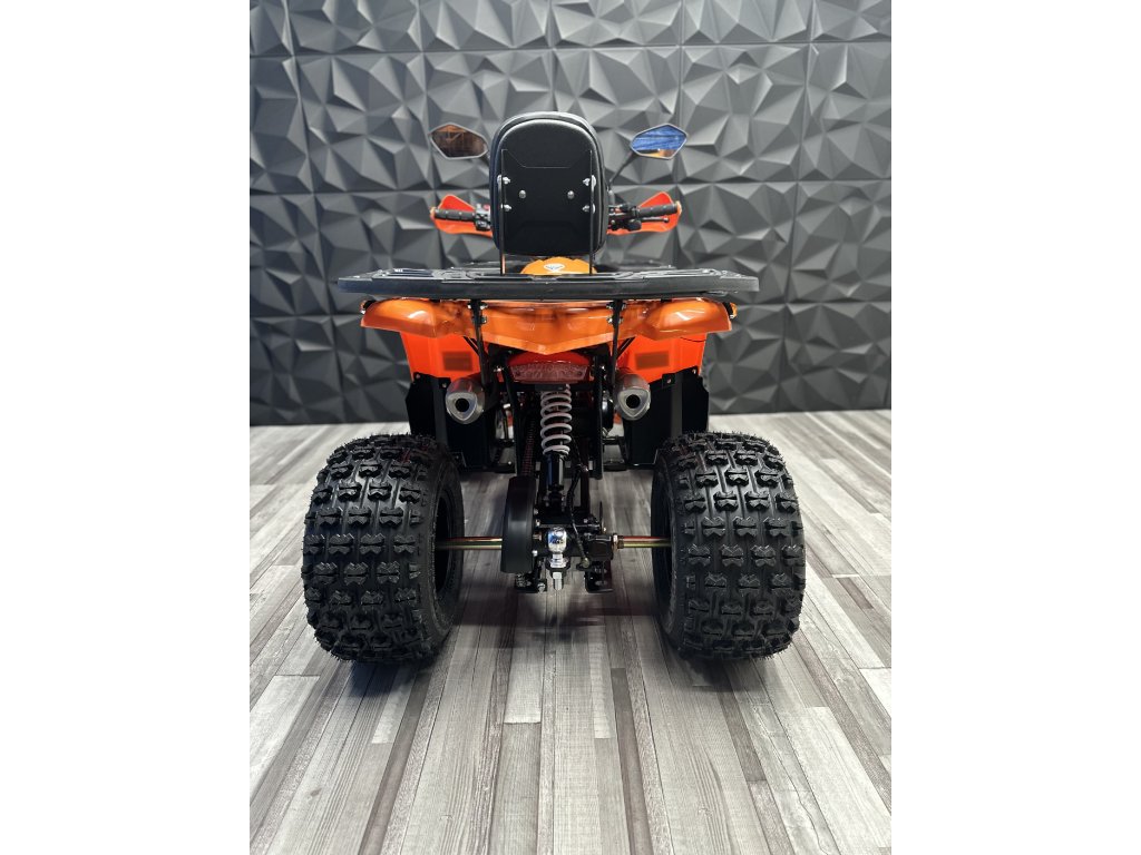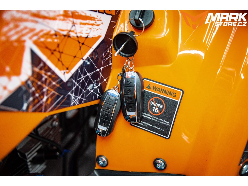 Dětská čtyřkolka - doporučený věk 5-15 let, 4-taktní motor, bezspojkové řazení 3 rychlosti + zpátečka, lze dálkově vypnout/zapnout, elektrický startér, objem 125 ccm, výkon 6 kW, kvalitní 8" hliníkové kola, doporučená maximální hmotnost jezdce 80 kg, palivo Natural 95