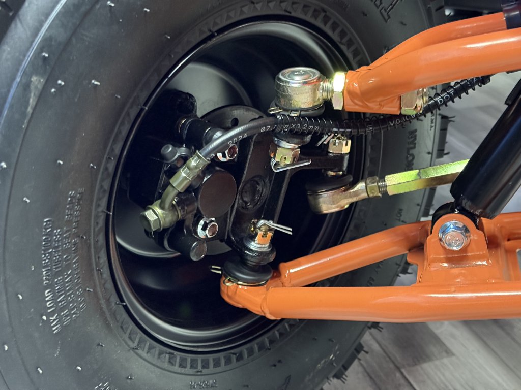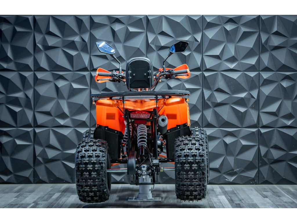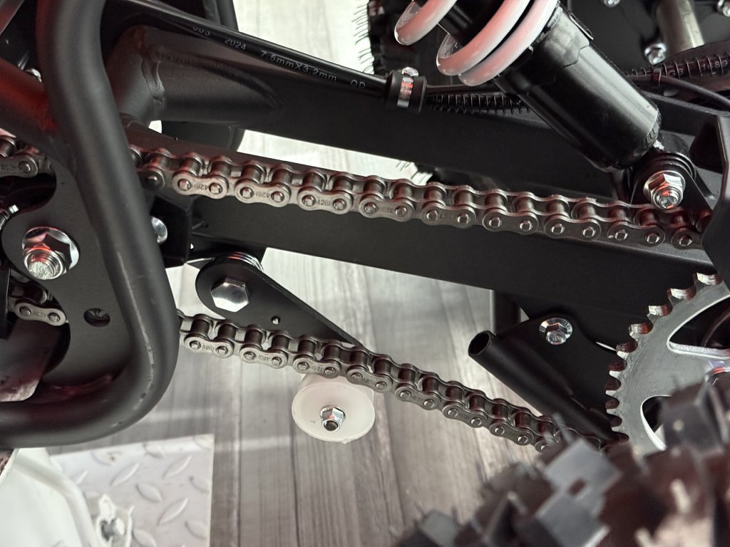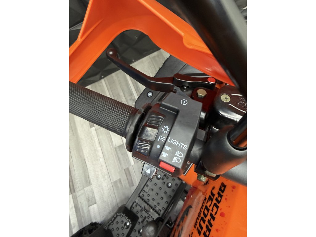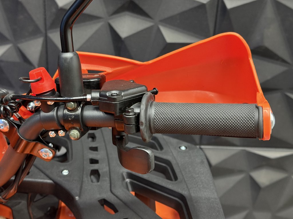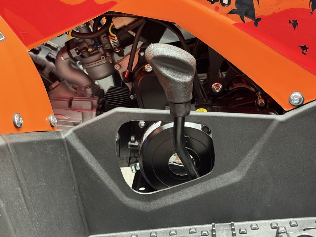 Tento model 2026 jsme vylepšili od staršího modelu 2025 o nádrž za kovovou s ukazatelem stavu paliva, osadili jsme čtyřkolku blinkry, vyměnili přepínač světel za kvalitnější z modelu Transformer a zadní náprava je o něco pevnější s lepším mechanismem dopínání řetězu, již by nemělo docházet k samovolnému uvolování zadní nápravy a případnému padání řetězu.