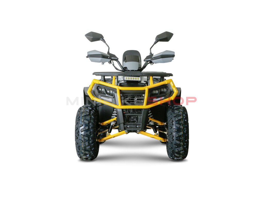 Naše čtyřkolky mají hydraulické brzdy a páčky, které děti lehce zmáčknou a snadno zastaví. Vybavili jsme ji LED diodovými světly, které skvěle posvítí na cestu a nejsou jen na oko. Zpětná zrcátka pro sledování ostatních jezdců v okolí. Digitální displej s ukazatelem rychlosti. Určitě doporučujeme přikoupit i dětskou helmu i vhodné oblečení.