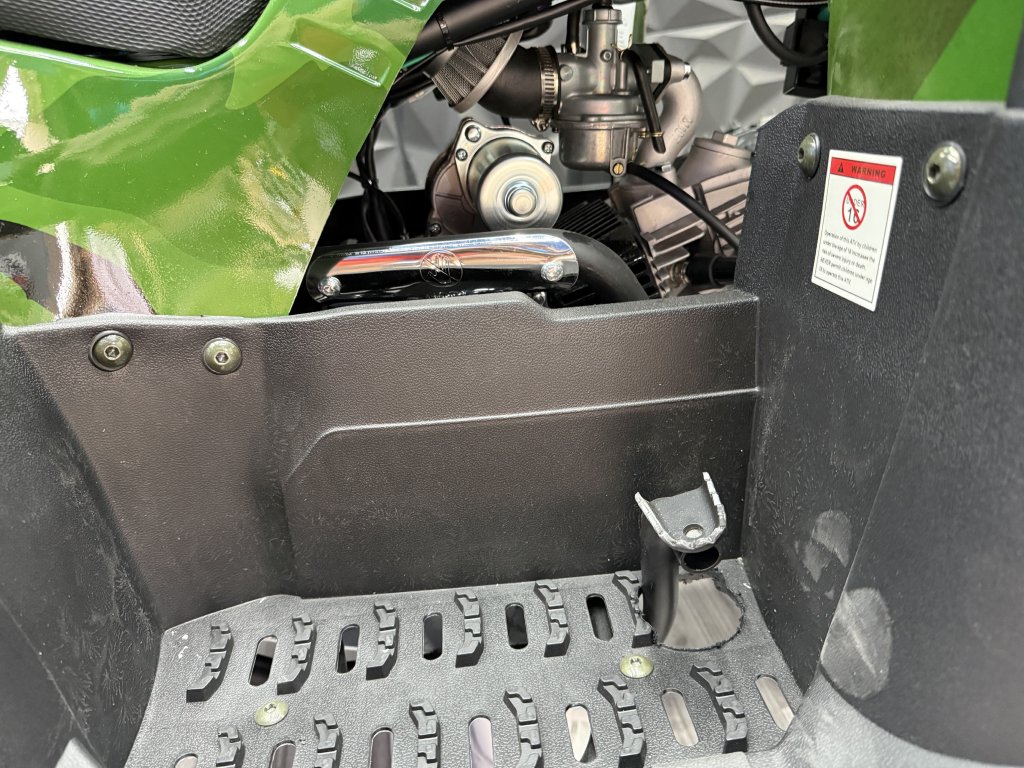 Tato čtyřkolka má přední i zadní hydraulickou brzdu a zadní je nožní , které děti lehce zmáčknou a snadno zastaví. Taky můžeš postupně zvyšovat výkon nastavením rozsahu plynové páčky. Vybavili jsme ji LED diodovými světly, které skvěle posvítí na cestu a nejsou jen na oko. Zpětná zrcátka pro sledování ostatních jezdců v okolí. Analogový displej s ukazatelem rychlosti. Určitě doporučujeme přikoupit i dětskou helmu i vhodné oblečení.
