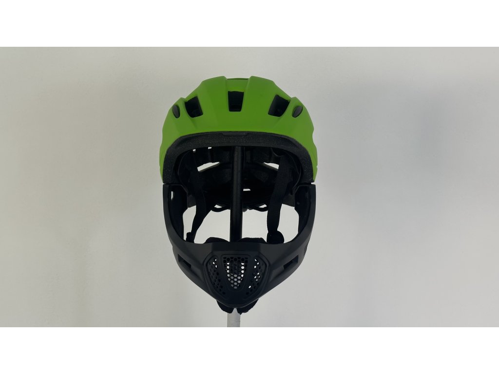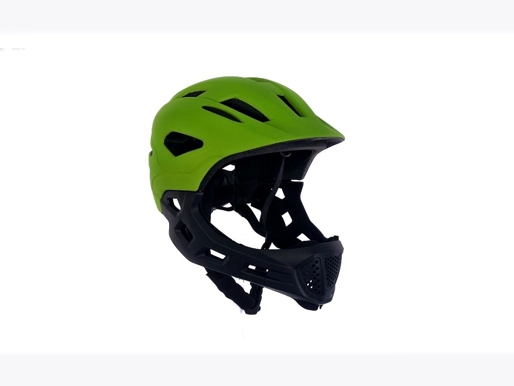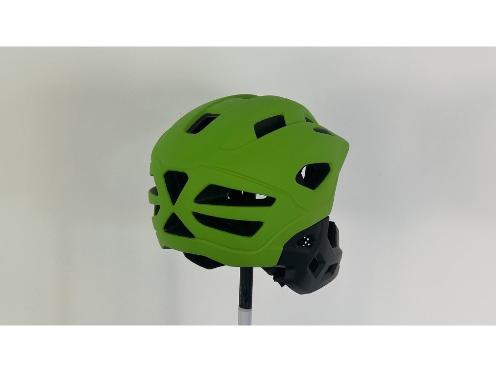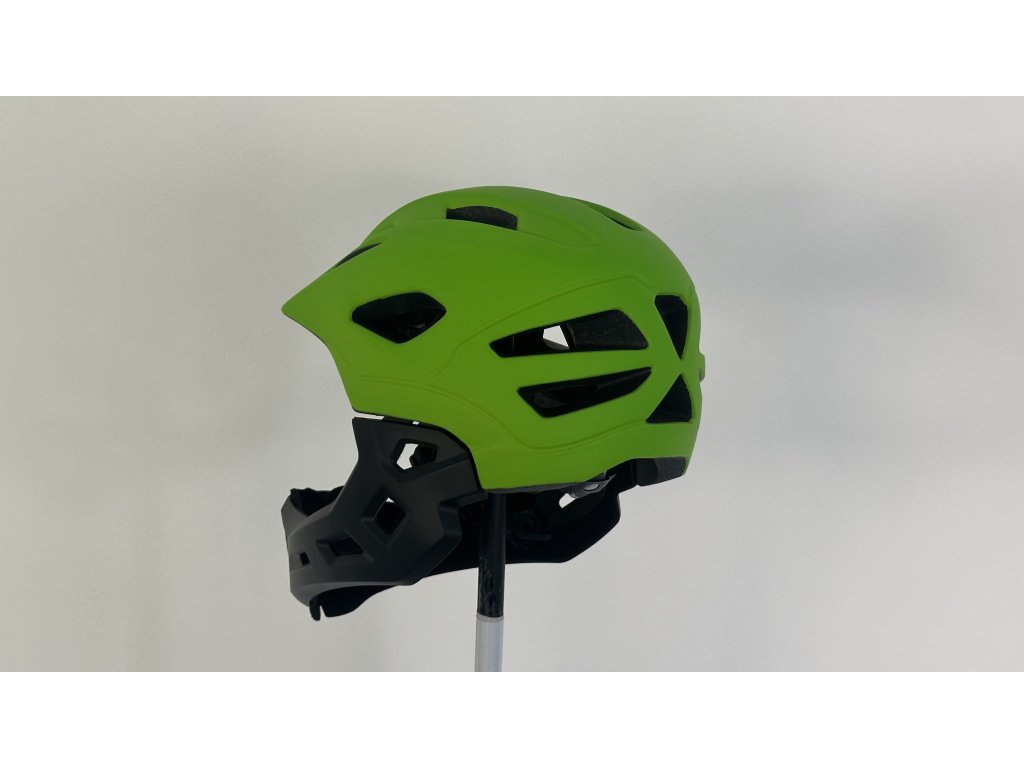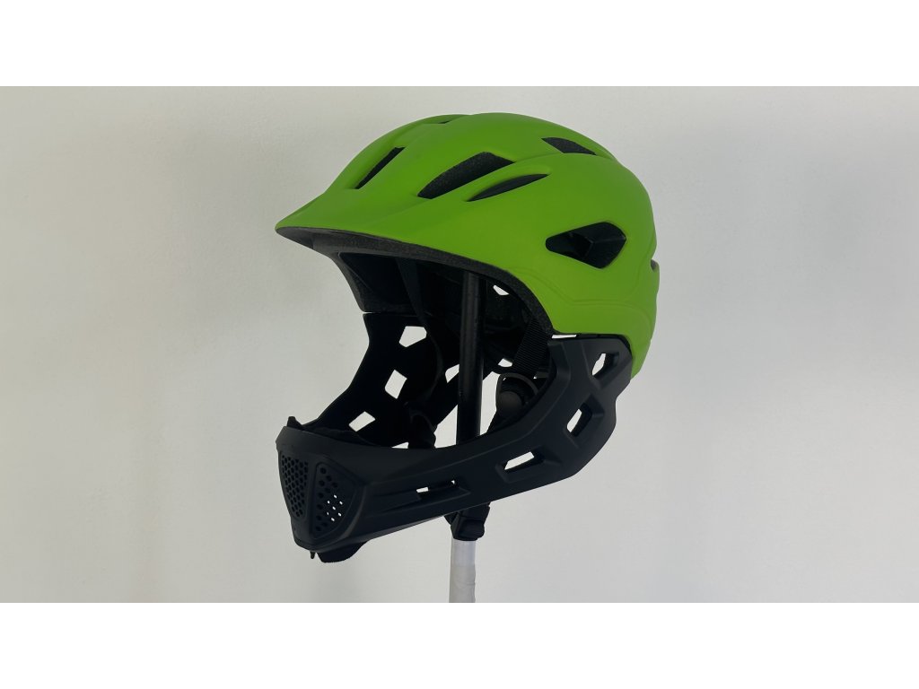 Dětská integrální BMX, MTB cyklistická helma, odnímatelný chránič brady - Zelená matná