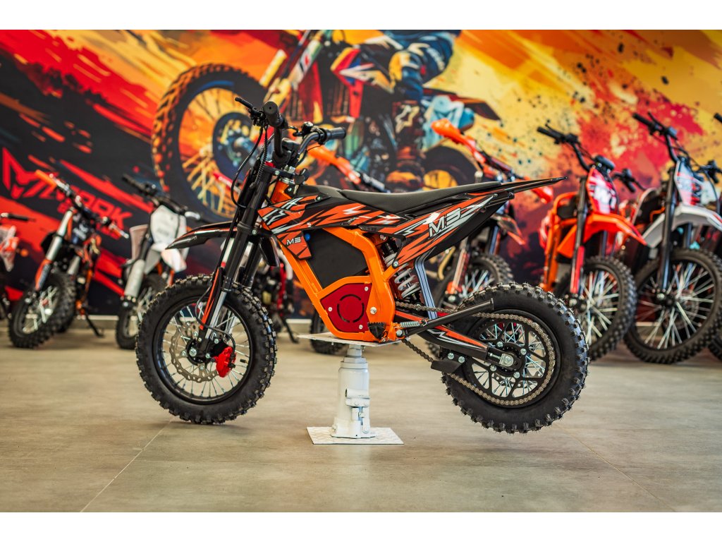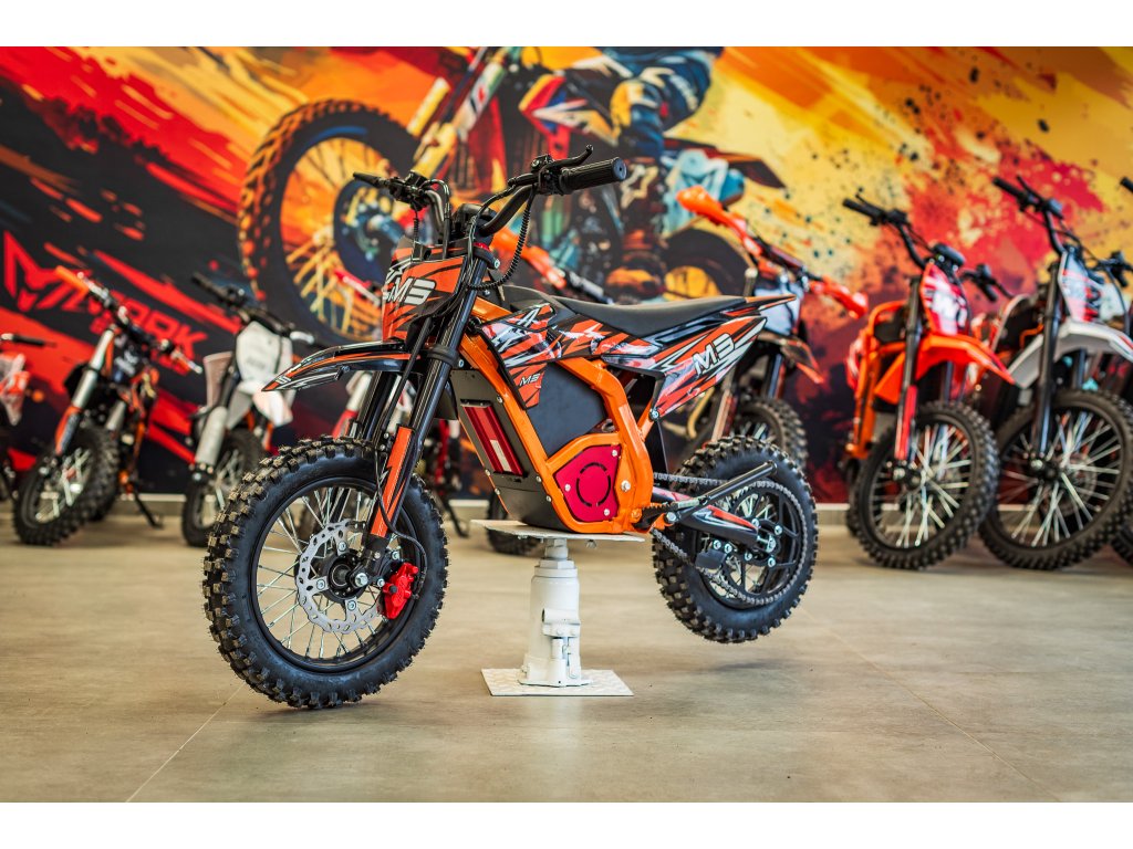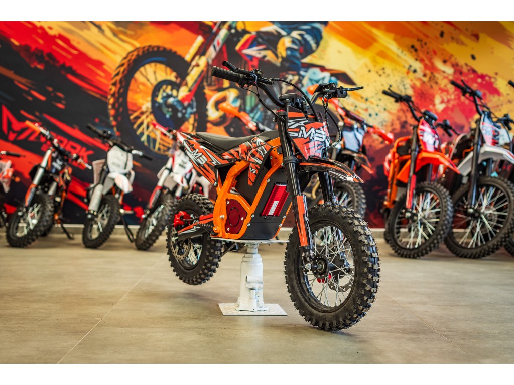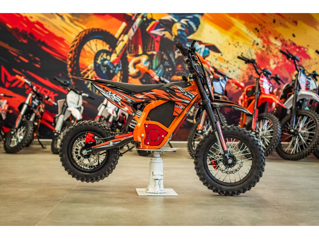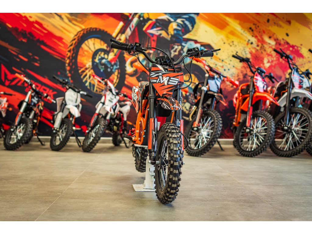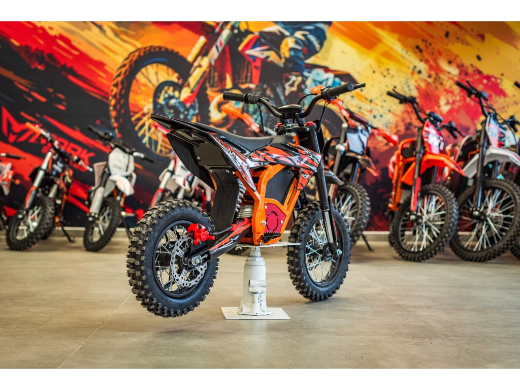 Jedná se o výkonný elektro pitbike pro děti 5-8let. Na fotce je Ondra 12 let 165cm. Poháněn je bezkartáčovým motorem s výkonem 1300W, který je zárukou svižného zrychlení. Rozpohybovat motorku zvládne až na 45km/h. Doplněn je lithiovou baterií 48V s kapacitou 18Ah, která zaručuje dostatečný dojezd. Dojezdová vzdálenost je u tohoto motocyklu až 30km (záleží na zatížení a terénu).