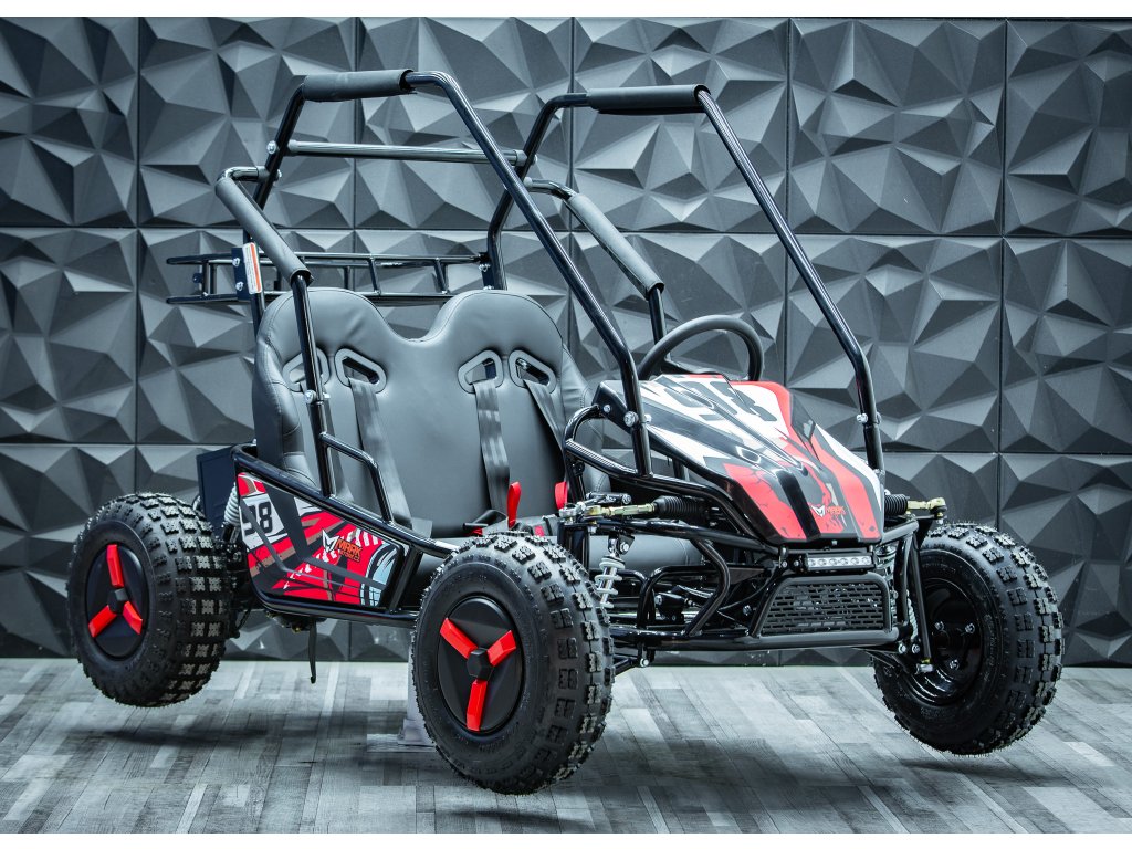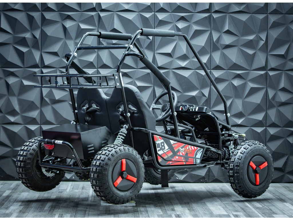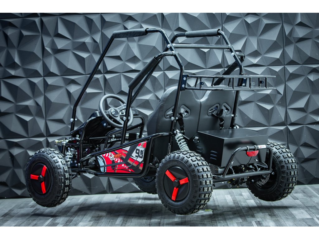 Protože jsme chtěli spojit to nejlepší pro začátečníky a pokročilé závodníky vznikla Buggyna o výkonu 2500W. Nabízí víc zábavy pro zkušenější dobrodruhy a zároveň je to snadno ovladatelný stroj s řadou bezpečnostních prvků pro začátečníky. Díky stálému pohonu obou zadních kol má bugyna Markstore perfektní dostupnost. Děti se za ní vždy otočí a pokud má doma sourozence, mohou jezdit spolu.