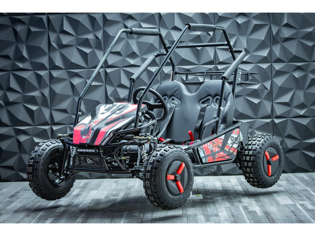 Tato Buggyna má zadní hydraulické kotoučové brzdy. Vybavili jsme ji LED diodovými světly, které skvěle posvítí na cestu a nejsou jen na oko. Určitě doporučujeme přikoupit i dětskou helmu i vhodné oblečení. Bugy je vybavena 3 polohovým voličem rychlostí a nožní i ruční brzdou.