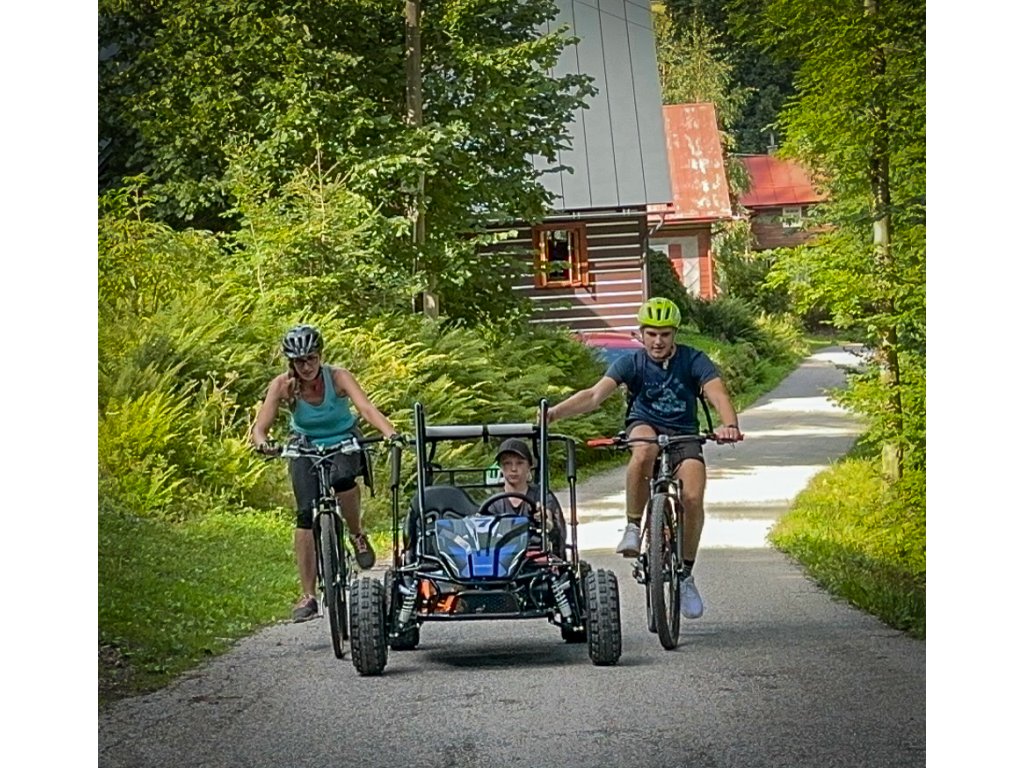 Buggyna je určená pro středně velké a velké děti. Ideální hmotnost dítěte je do 80kg. Uveze i větší dítě, ale jen krátkodobě. Díky širší nápravě vpředu a užší vzadu je perfektně ovládatelná, ale hlavně je bezpečná a jen tak se nepřevrátí a má ochranný rám.