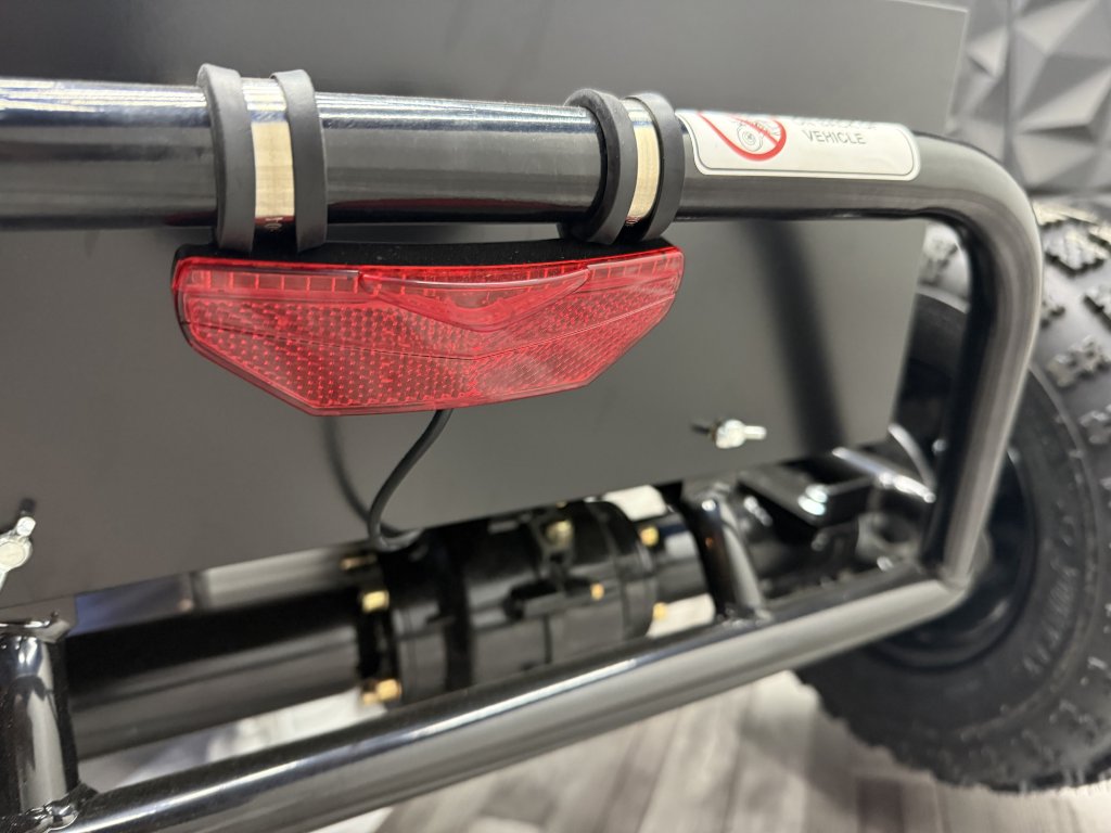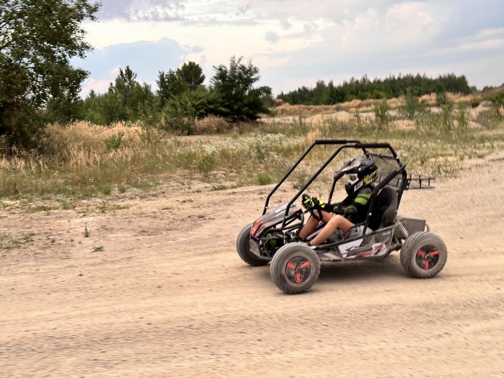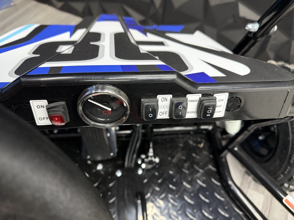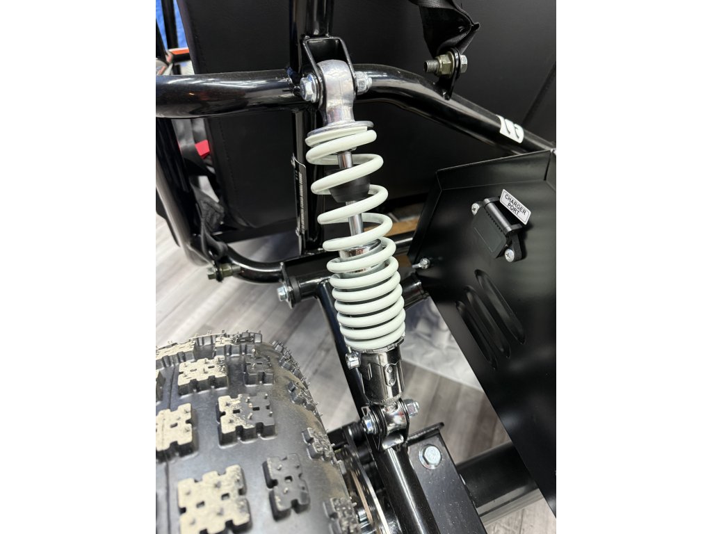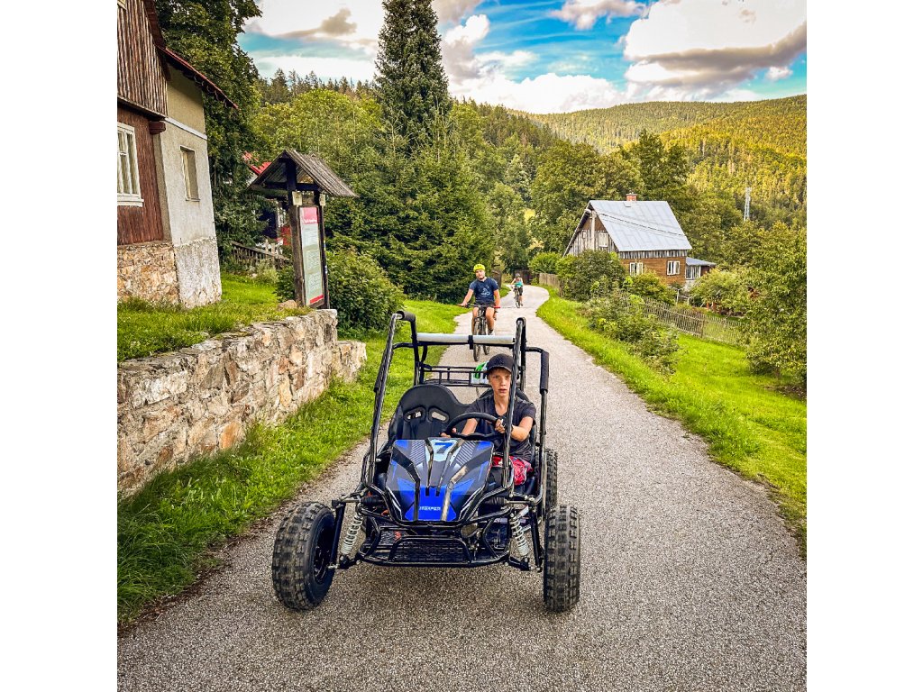Tato Buggyna má zadní hydraulickékotoučové brzdy. Vybavili jsme ji LED diodovými světly, které skvěle posvítí na cestu a nejsou jen na oko. Určitě doporučujeme přikoupit i dětskou helmu i vhodné oblečení. Bugy je vybavena 3 polohovým voličem rychlostí a nožní i ruční brzdou.