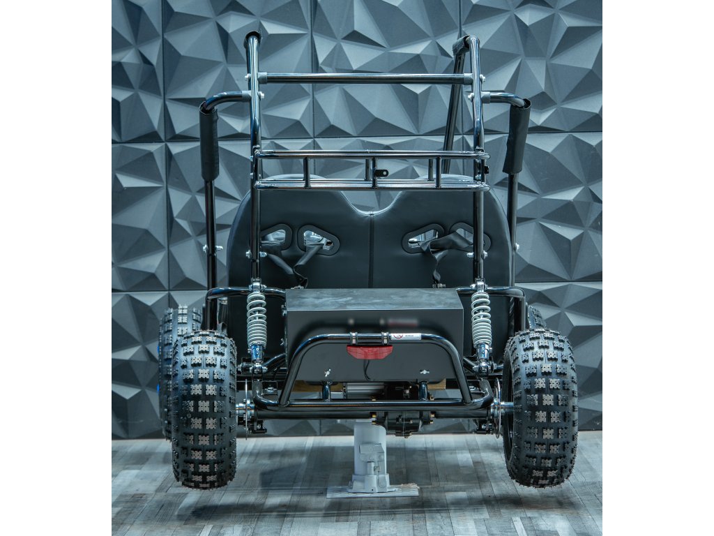 Protože jsme chtěli spojit to nejlepší pro začátečníky a pokročilé závodníky vznikla Buggyna o výkonu 2500W. Nabízí víc zábavy pro zkušenější dobrodruhy a zároveň je to snadno ovladatelný stroj s řadou bezpečnostních prvků pro začátečníky.Díky stálému pohonu obou zadních kol má bugyna Markstore perfektní dostupnost. Děti se za ní vždy otočí a pokud má doma sourozence, mohou jezdit spolu.