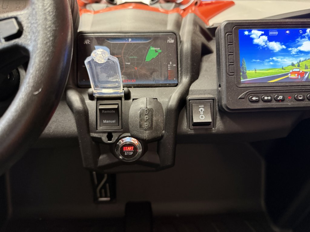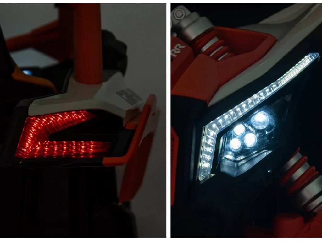 Buggy se startuje stylovým podsvíceným tlačítkem Start/Stop se zvukem motoru. O atmosféru se postará hudební LCD panel, přední i zadní LED osvětlení a snadné ovládání směru jízdy vpřed/vzad.