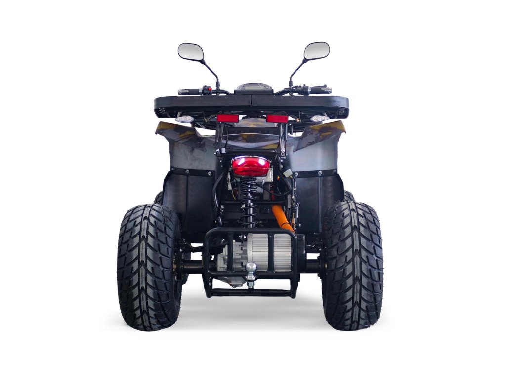 Čtyřkolka je vybavena předními bubnovými brzdy a zadními kapalinovými, kotoučovými brzdami. přední bubnové brzdy jsou ovládány pákou na řídítku, zadní kotoučové kapalinové brzdy jsou ovládány pedálem, pravou nohou. Motor je osazen na zadní odpružené nápravě, převod z motoru na osu je pomocí uzavřené převodové skříně. Přední kola jsou na samostatně odpružených závěsných ramenech. Na propracovaných hliníkových ráfcích jsou osazeny velké pneumatiky s terénním dezénem zajišťujícím dokonalou trakci v terénu. Na řídítkách je upevněn digitální tachometr. Dravým vzhledem i akcelerací se stroj přibližuje „dospělým“ čtyřkolkám se spalovacím motorem. Zásadní výhodou je však naprosto tichý provoz bez emisí. Provozovat tedy lze i v místech, kde by hluk, nebo zápach zplodin mohl okolí obtěžovat.