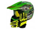 Helma je nejdůležitějším prvkem výbavy každého malého dobrodruha. Nezáleží na tom jestli bude jezdit kolem baráku nebo vyrazí do lesa či na polňačku. Bez helmy na moto nebo na čtyřkolku nesmí dítě ujet ani metr. Pokud jezdí motocross, pitbike, dirtbike orientujte se především na motokrosové helmy. Ty jsou zároveň vhodné i pro jízdu na čtyřkolce nebo MTB. Ke každé přilbě vřele doporučujeme přikoupit motokrosové brýle, protože cross helmy nemají ochrané plexi a čistič helem na vnější nečistotu + čistič vnitřních částí helmy, který zabraňuje tvorbě bakterií, odstraňuje zápach z potu a zároveň helmu dezinfikuje.