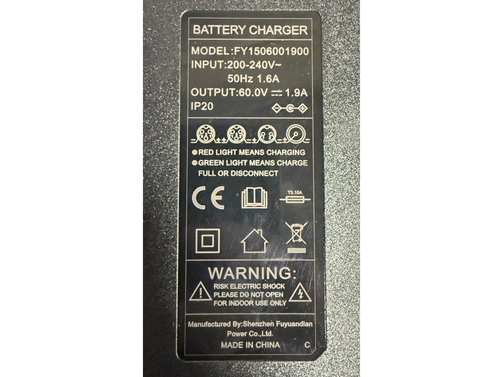 Nabíječka 60 V s nabíjecím proudem 1,9 A a 3pinovým konektorem. Vhodná pro nabíjení 60V baterií u elektrických čtyřkolek, koloběžek, elektrokol a dalších zařízení.