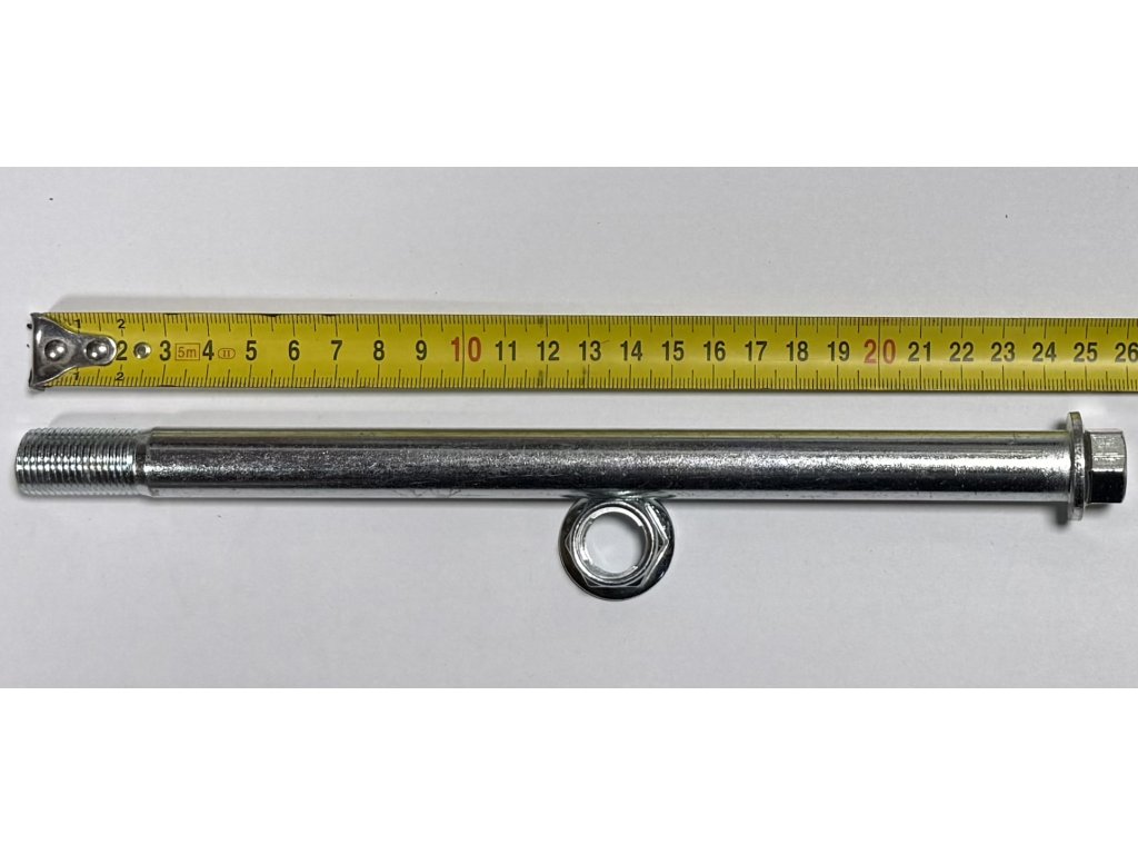 Osa zadního kola vhodná pro motorku ZUUMAV K5. Délka komplet i s hlavou šroubu 26cm, průměr 17mm