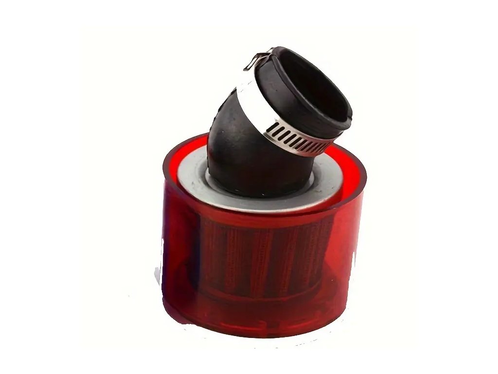 Sportovní vzduchový filtr 42mm zahnutý s krytem - červená