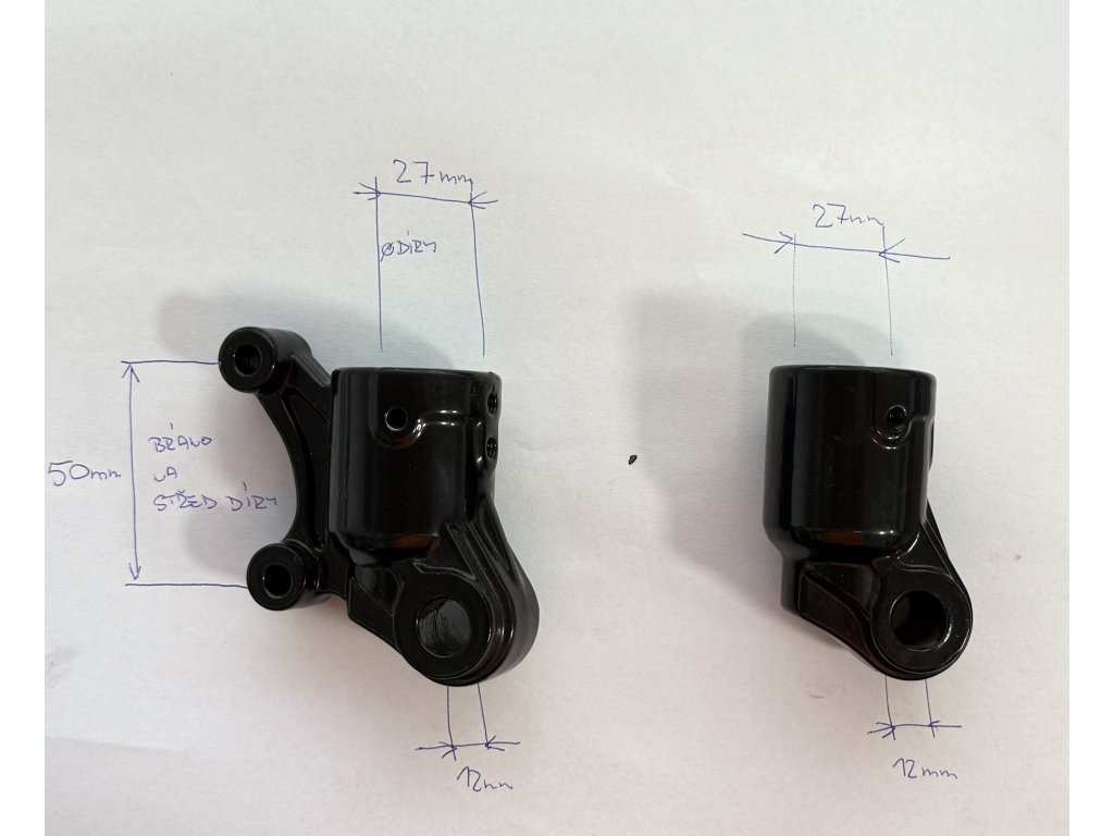 Spodní díl předních šavlí, třmeny k uchycení kol. Balení obsahuje 2Kusy, levý a pravý